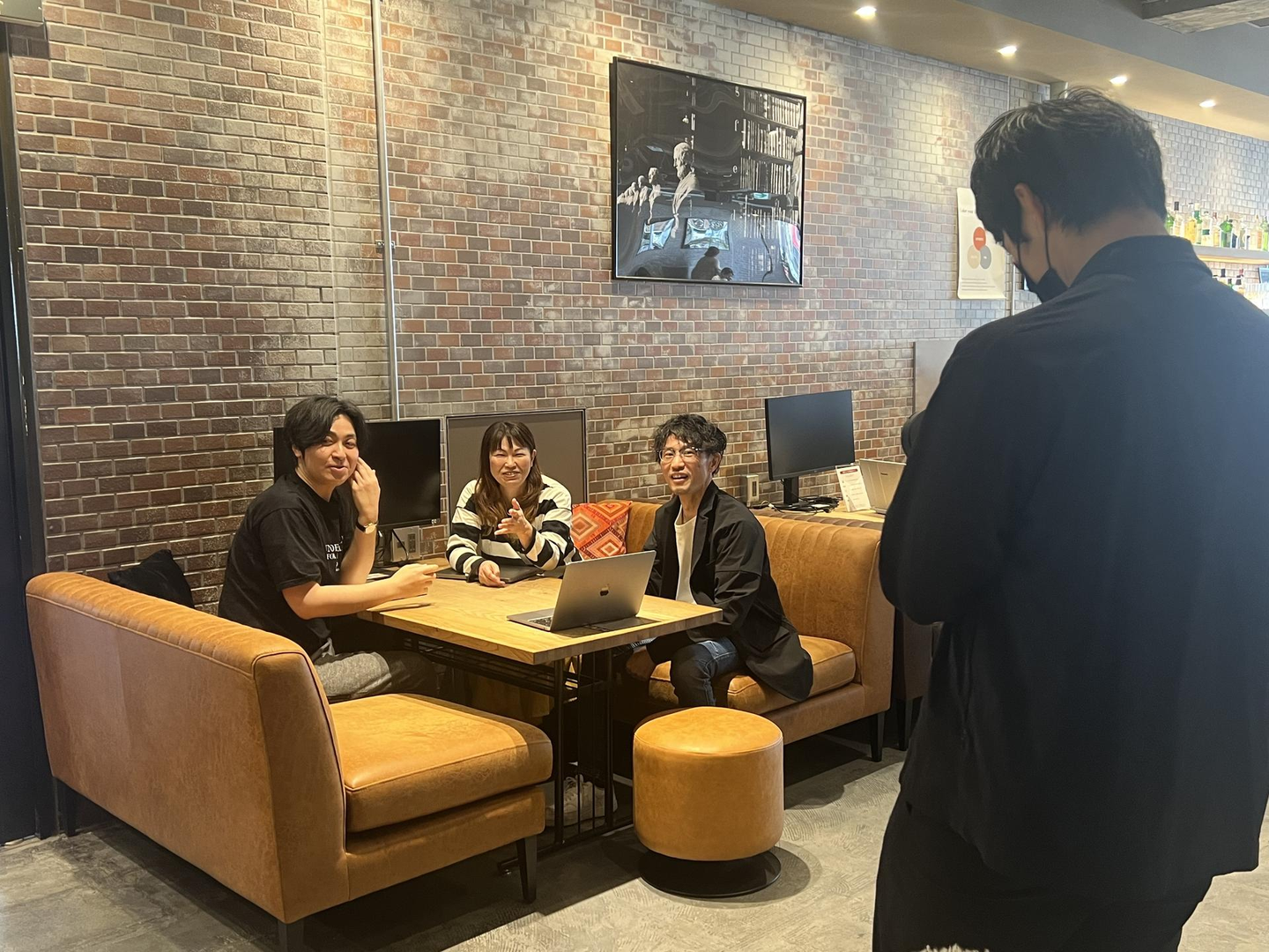 今回、都内近郊に住むメンバーだけでなく、都留市在住の社員が集まり、立川オフィスで写真撮影を行いました。山梨オフィス(本社)もなかなか味がありますが、都内コワーキングスペースで働くって、なんだか新鮮で気分も上がります。