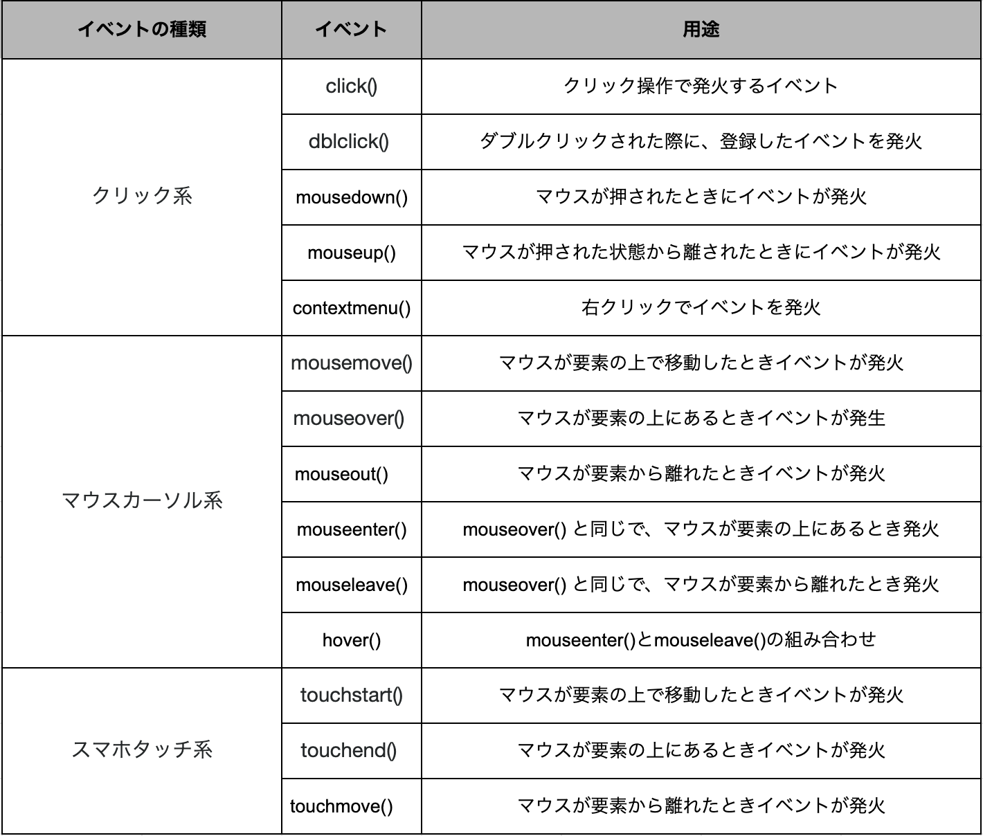 });マウスイベント