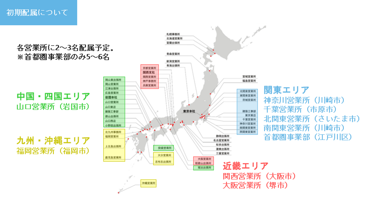 など、メリットも多くここ数年の離職率は減少傾向にあります。勿論、全国展開している会社なので「○○くんを課長に推薦したいから大阪へ行ってくれないか?」という転勤がないわけではありません。ですが、それはあくまでも前向きな異動であり皆さんの1番不安視している「入社当初の配属先」や「毎年いろんな県に飛ばされてしまうのでは」というような意味のものではありません。