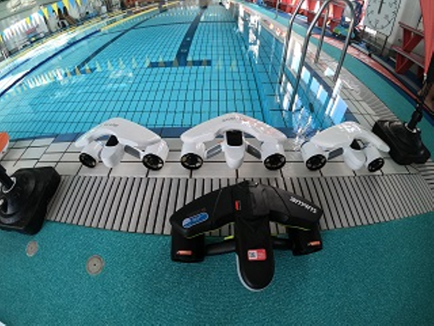 名前の通り水中スクーターです(笑)バタ足などせずに捕まっているだけで進めちゃうんです!簡単に言うと、原付バイクの水中版ですね!