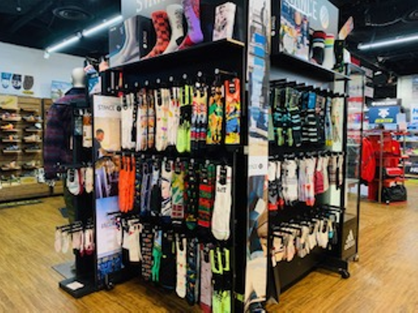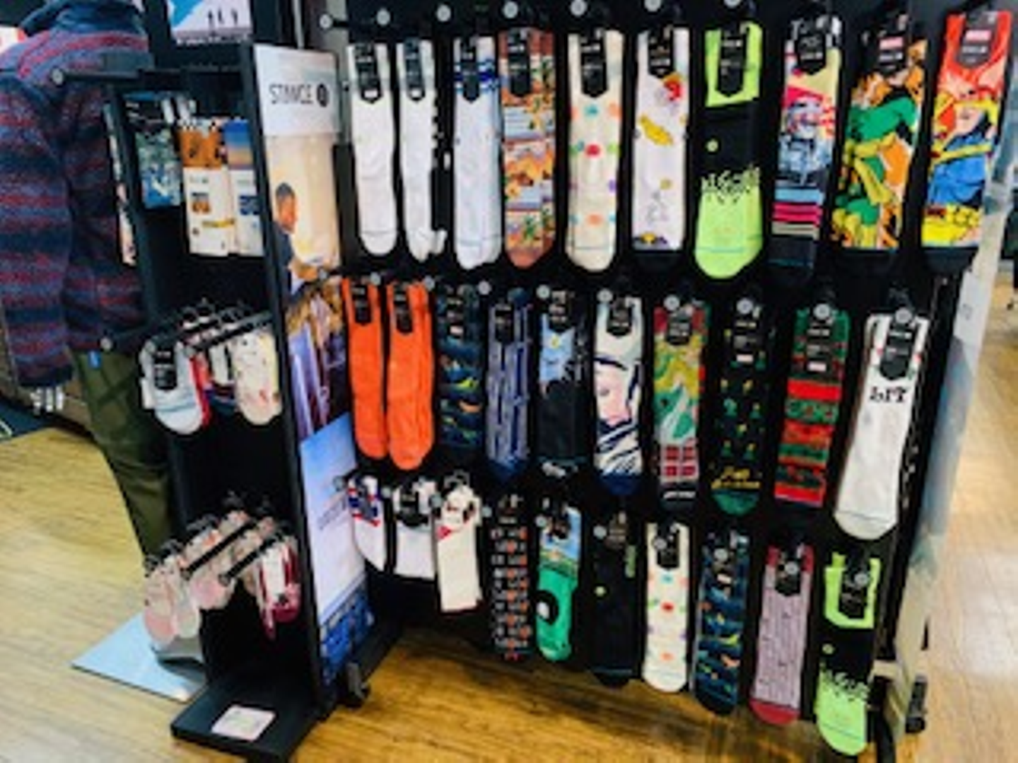 スケートボードセクションにあるSTANCEソックスはバスケットボールやベースボールとはまた少し違って柄物が多いです。スケーターは履いている方がとても多く、スターウォーズシリーズなどもありますよ。