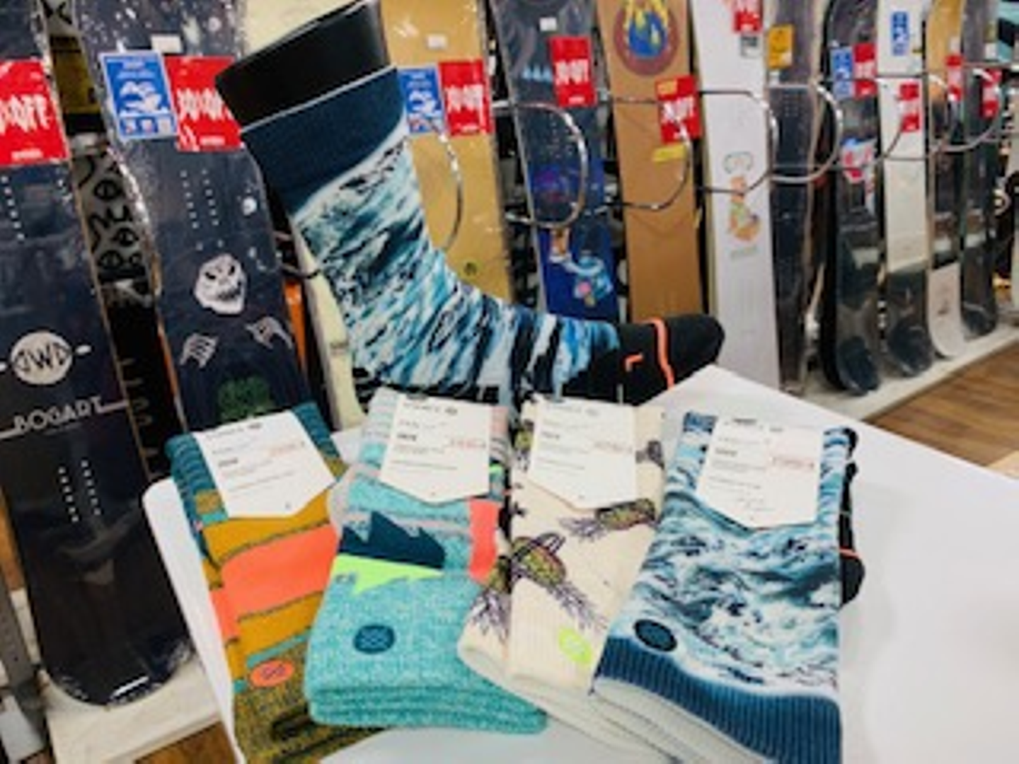 スノーボードセクションのSTANCEソックスはサイズ展開はレディースになります。企画はもちろんメンズもありますよ!ウィンタースポーツの靴下って分厚いイメージがあると思いますが、最近は今までより薄くなってきいます。STANCEも同様、思っているより厚みはないと思いますよ。