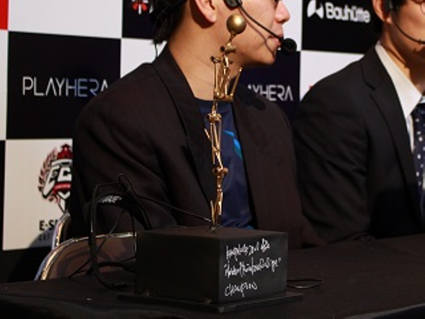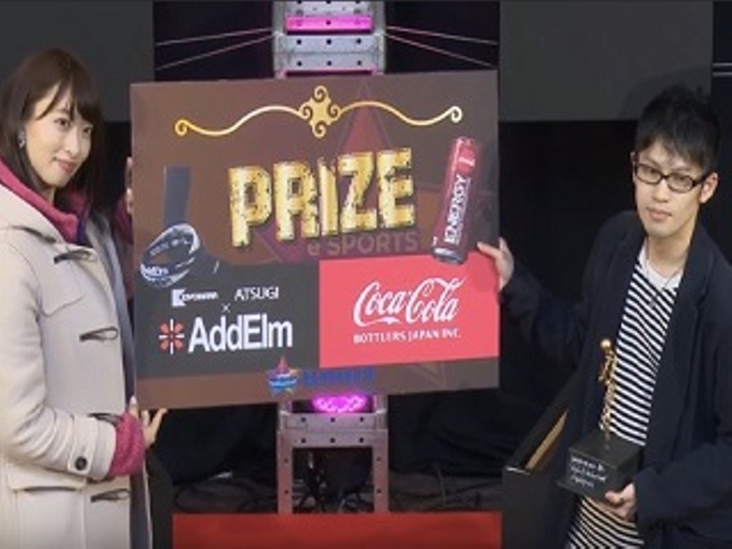 実は「へろし」選手が持っているトロフィーもBANPAKU杯特別トロフィーになっています。このトロフィーの形どこかで見たことないですか??ぜひ、心斎橋アメリカ村で探してみてください!(笑)