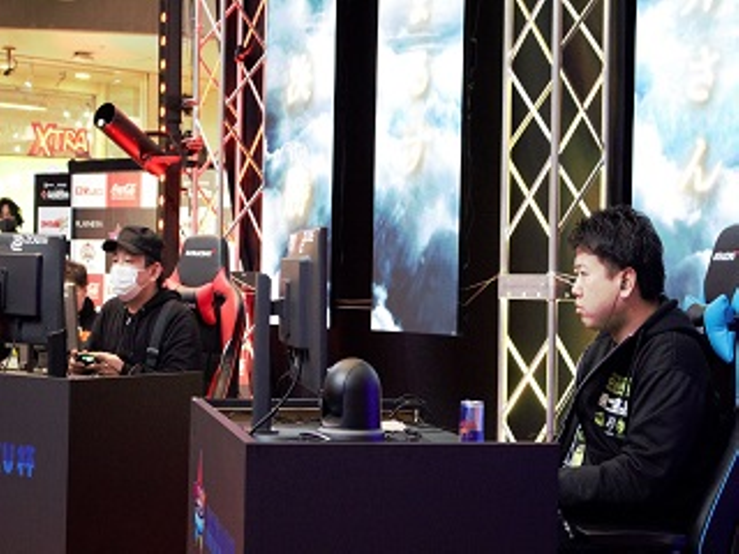 こんな近くで、こんな大きなモニターで対戦している姿を見ることはなかなかないと思います。観戦している側も貴重な体験だと思います。それにしても、すごい集中力ですよね。