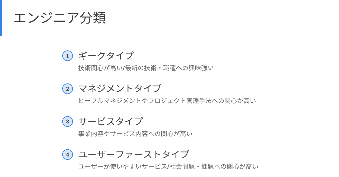 仮に、エンジニアを下記のように4分類したとします。