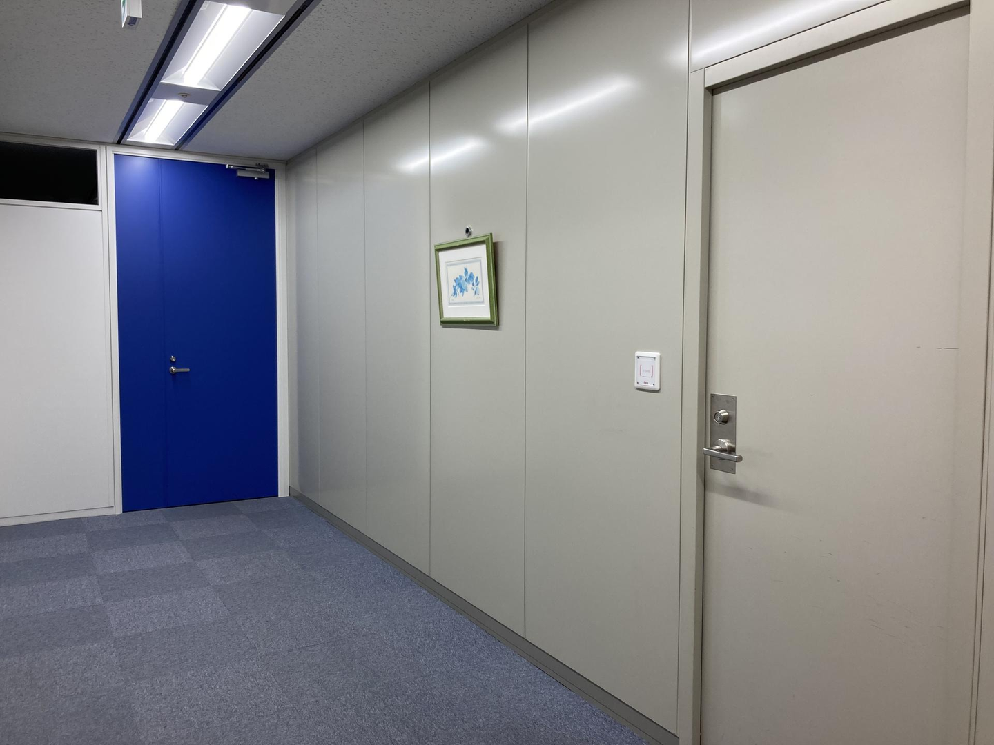 ちなみに奥に見えている赤色と青色の扉は、それぞれ小会議室・大会議室となっています。