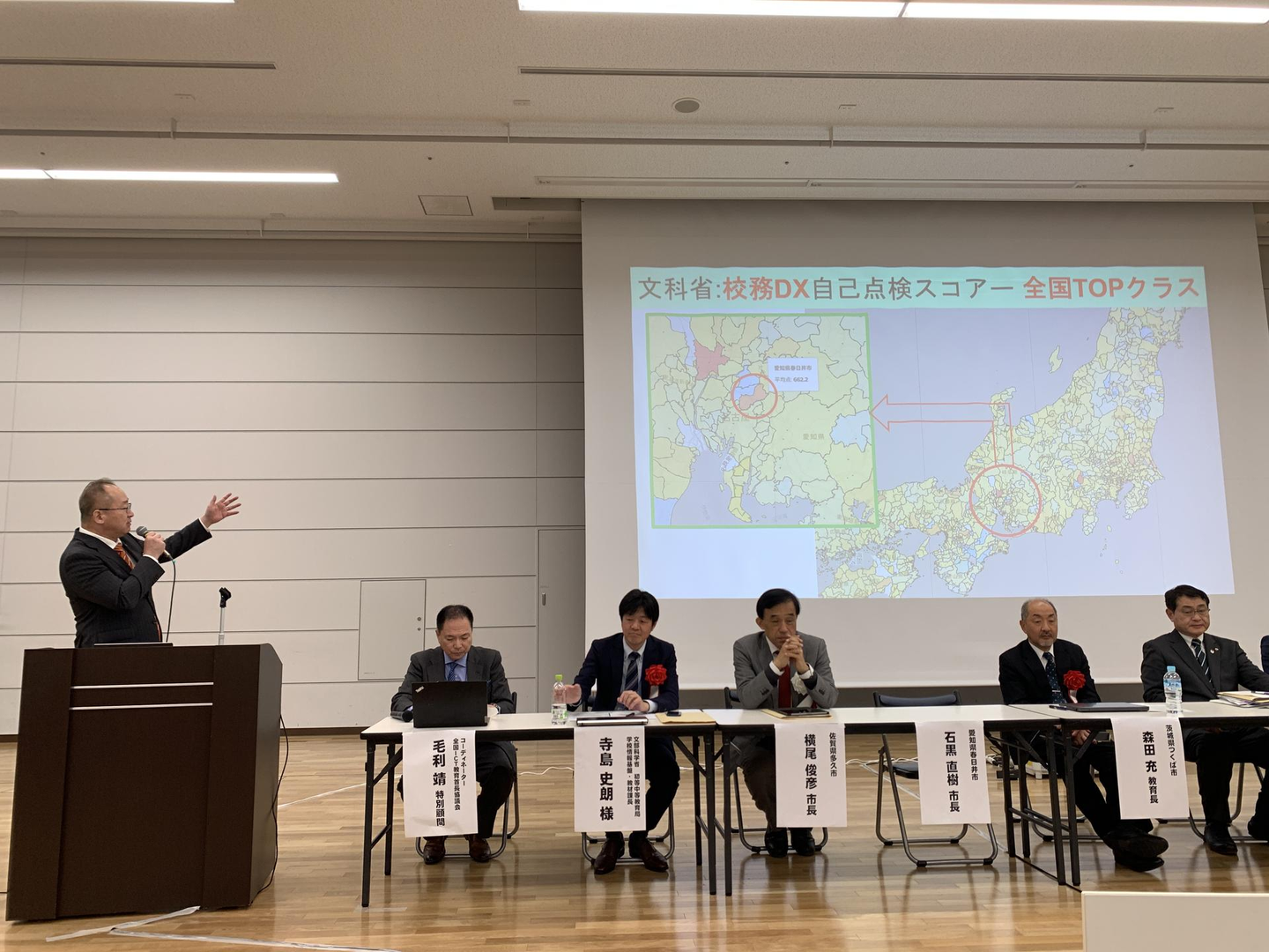 午後は、文部科学省初等中等教育局学習情報基盤・教材課長の寺島史朗氏の講演「GIGAスクール構想が拓く教育の未来」と、全国から集まった総勢11自治体による全国ICT教育首長サミットが行われました。