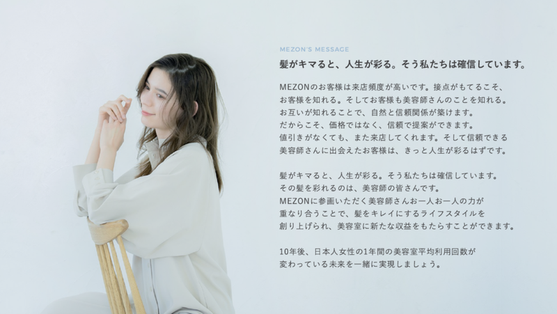 これがMEZONが、美容室・美容師さんに提供したい価値である。