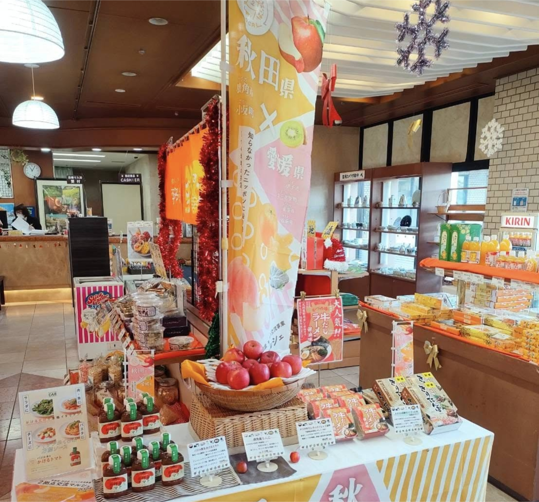 物販事業では、伊予市の特産品の販路拡大を目的とした取り組みを行っています。具体的には、「モノ・ヒト交換交流事業」と題し、提携エリアと共にお互いの地域産品を交換し合い、それぞれのエリアで販売するという内容です。昨年は秋田県鹿角市と連携をして、鹿角市にある「道の駅かづの」「道の駅おおゆ」にて伊予市の特産品を販売しました。