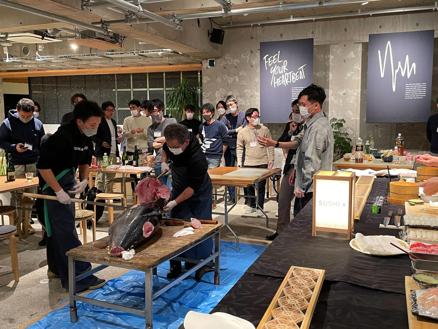 その場で解体ショーが始まり、すし職人が握るお寿司を皆さんに美味しく召し上がっていただきました。