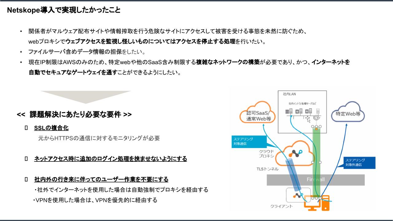 ユーザー会で執行役員CIOである木戸はNetskopeの導入背景や目的を話しました。