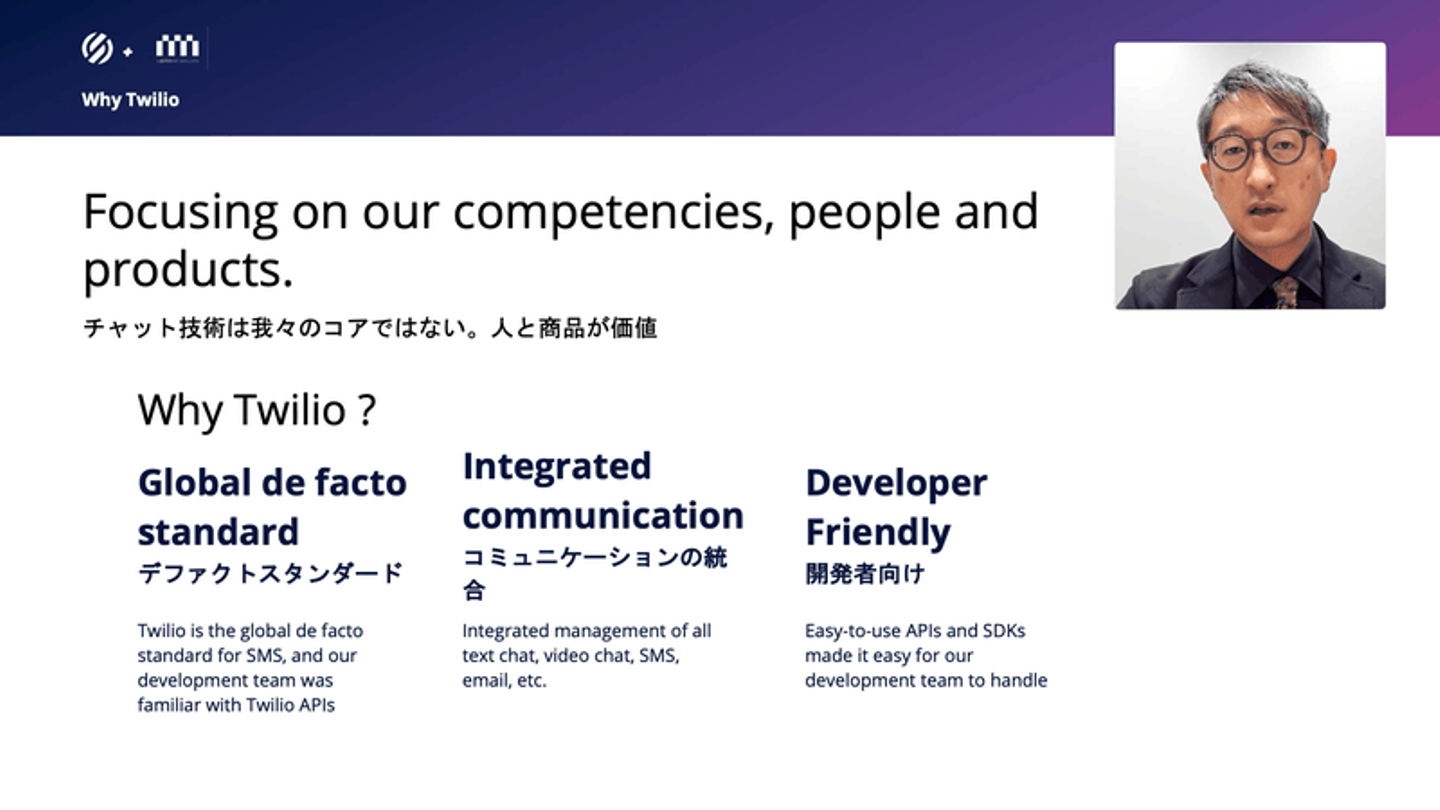 三越伊勢丹はソフトウェア開発の会社ではないため、チャットやビデオ通話はDX実現の手段として割りきり、Twilioの技術を導入しました。結果、スピード感のある実現が可能になったと考えています。