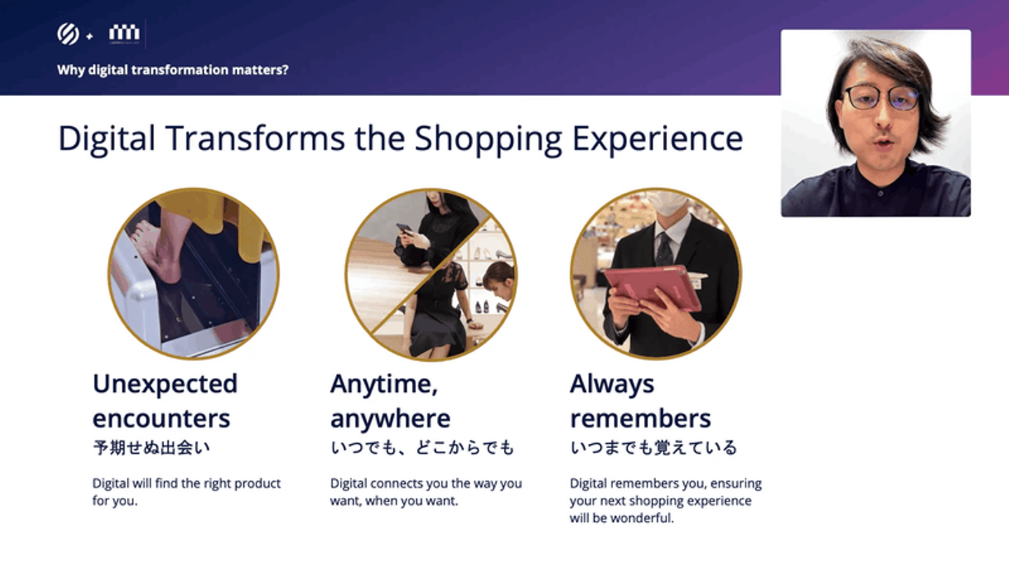 三越伊勢丹では百貨店の強みである「接客」に「デジタル」を掛け合わせることで最高の顧客体験を実現したいと考えています。この接客DXにおける重要なポイントが次の3つです。