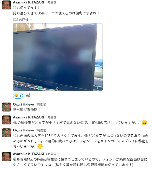 北崎さんも愛用しているとのことでSlackが盛り上がっていました📺💓