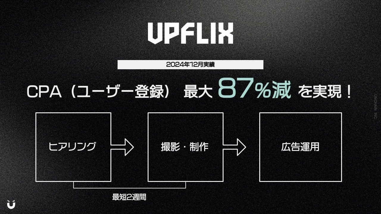 UNCHAINはゲーミフィケーションを活用したSNSキャンペーンを数多く手がけてき、「広告」と認識される映像と、「エンタメ」と解釈される映像の境界線を、デジタル運用による実データで検証してまいりました。そうした知見を活用し、次世代動画広告制作パッケージ「UPFLIX」をこの度リリースいたしました。