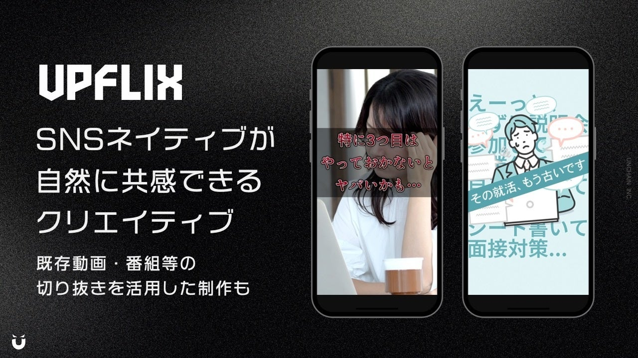 UNCHAINオリジナル広告制作パッケージとして、動画広告ソリューション「UPFLIX」をリリースしました。