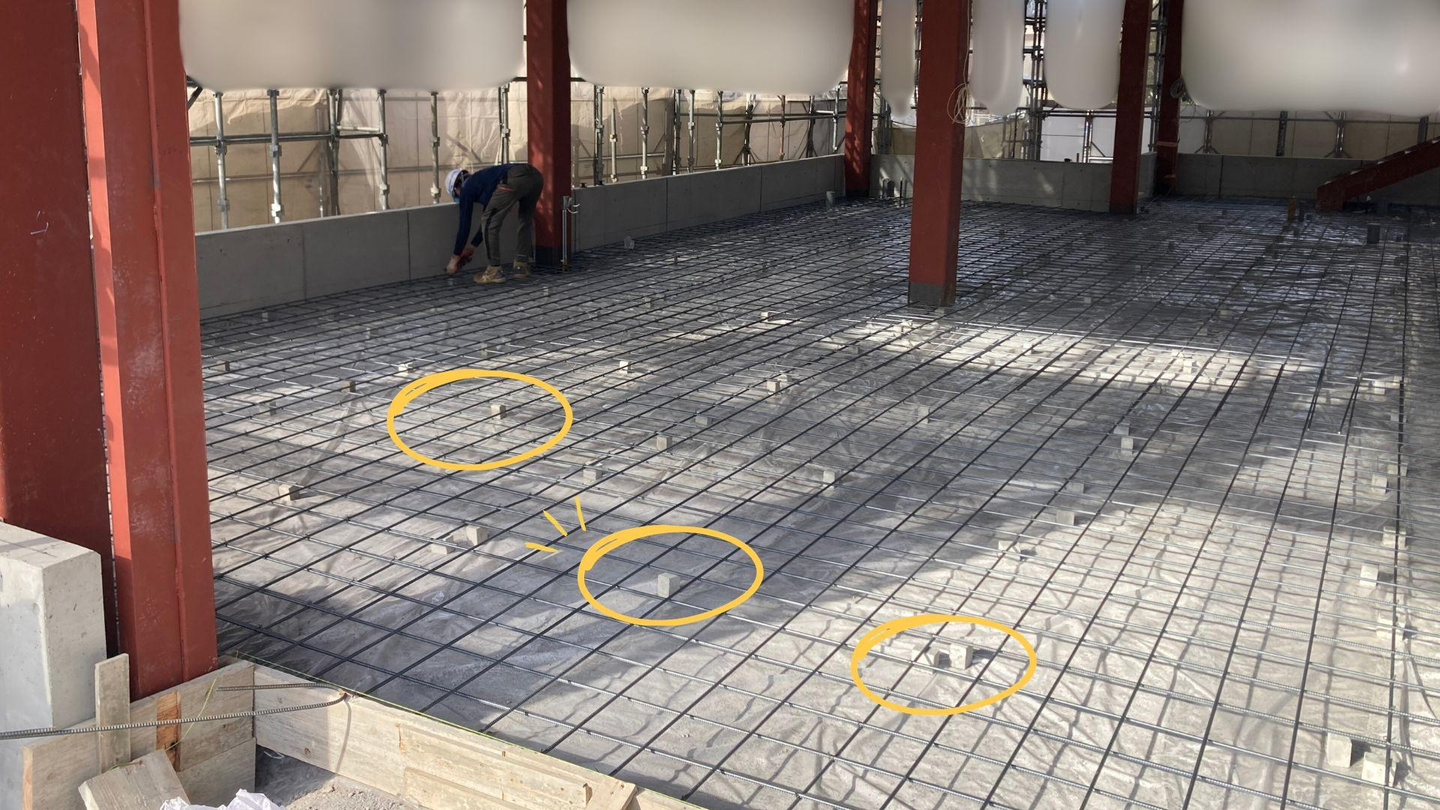 スペーサーは、コンクリート打設時に鉄筋が正しい位置に固定されるために不可欠な部材です。この「正しい位置」が、建物の将来を大きく左右します。