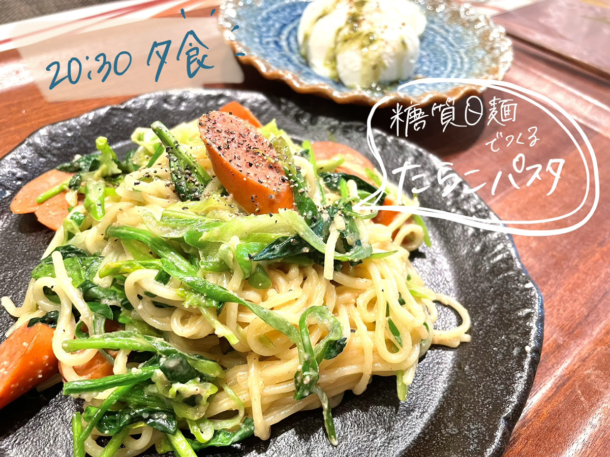 この日のメニューは糖質0麺たらこパスタ&モッツァレラチーズ!