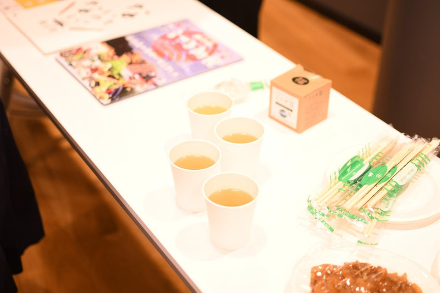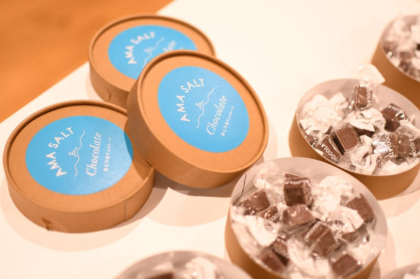 海士町産の塩を使用した「海士乃塩チョコレート」や海士町産の酒米と海士町の水で醸した日本酒「承久の宴」、ほかにも「肝醤油漬け」や、島のハーブティ「ふくぎ茶」など、海士町の産品をお楽しみいただきました。