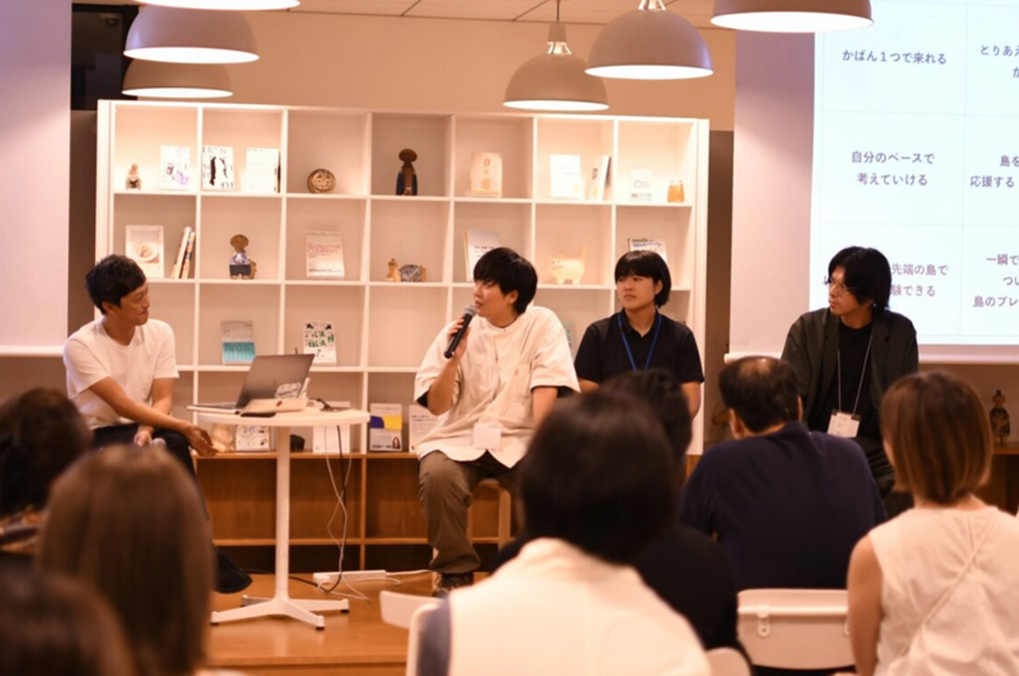 続いては、現役大人の島留学生の箭内祐さんと、大人の島留学卒業生の岩見しおりさん、堀之内千夏さんによるパネルトークを行いました!年間100名近い若者が隠岐島前3島に来島するのにはどのような魅力があるのか。そこで今回は【大人の島留学の魅力】というテーマで大人の島留学生が想う【魅力】の一部をご紹介します!