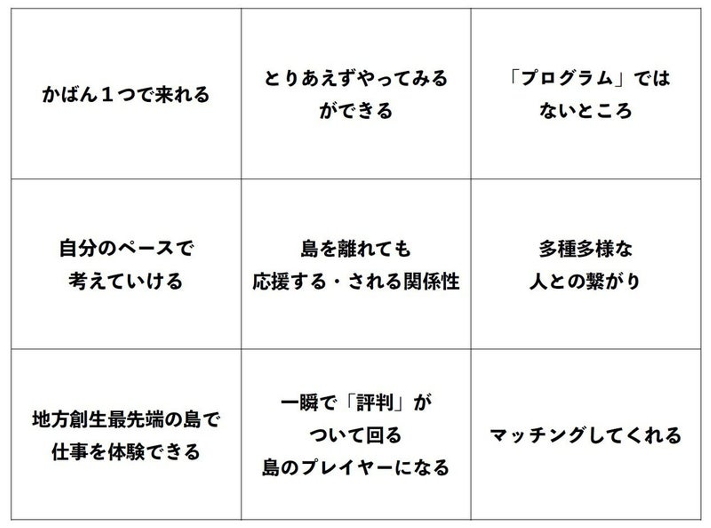 その多種多様なみなさんとつながりの中で、自分のフィールドでは普段出てこないような意見が飛び交い、島の中で新たな仕事がうまれたり、仕組みづくりの機会創出の場へとつながることがなによりの魅力ですね。