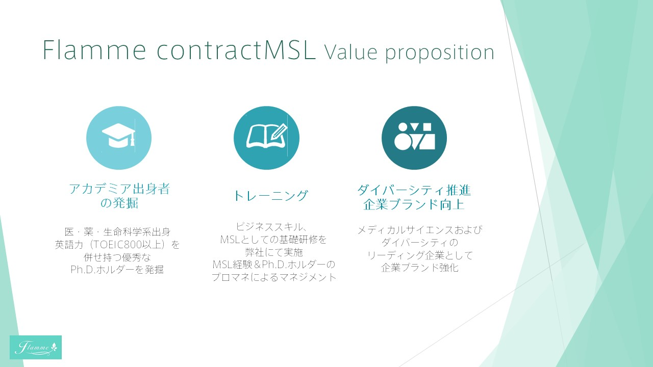 その後、フラームジャパンの提供するコントラクトMSLについてご紹介をさせていただきました。