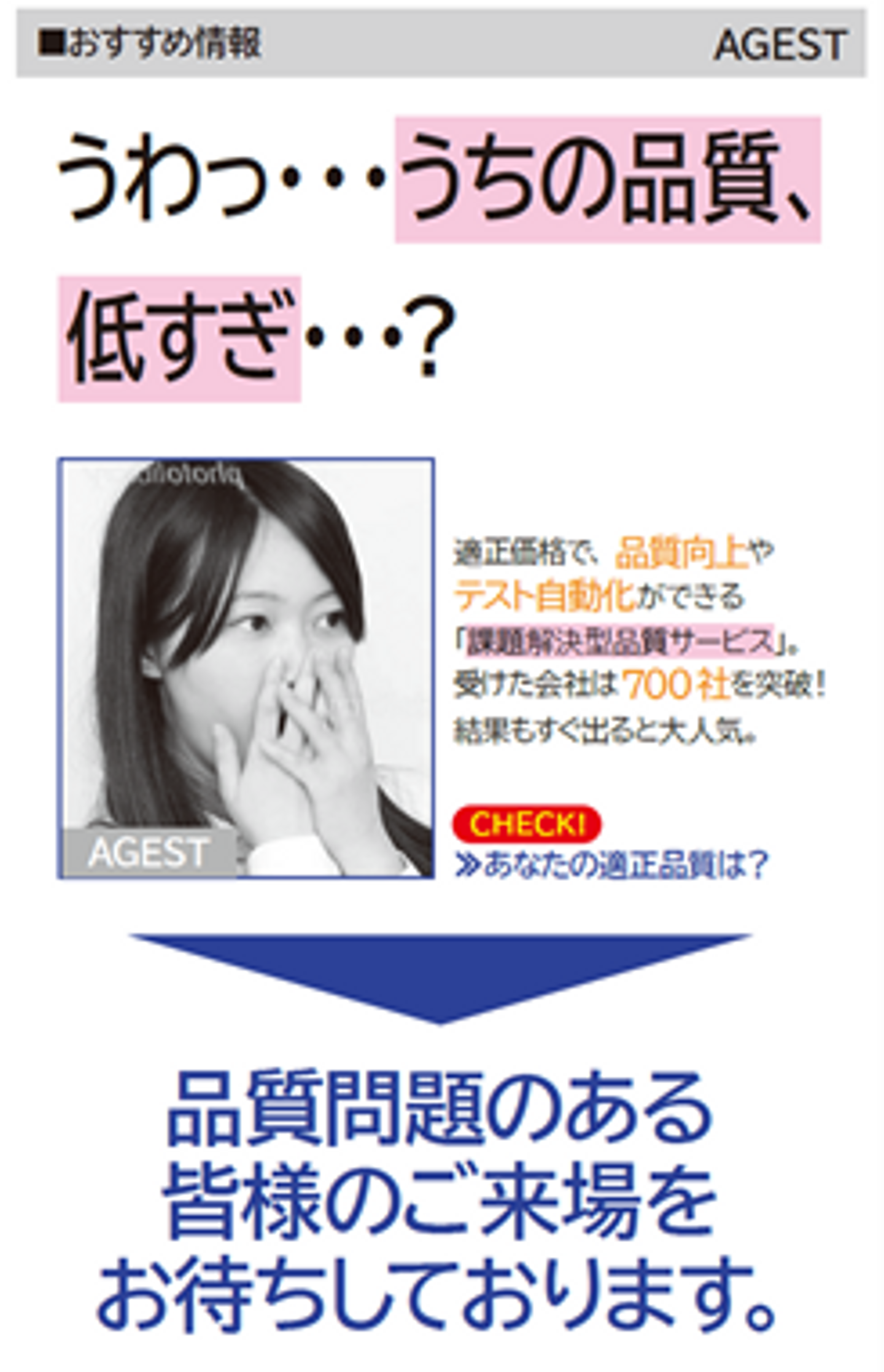 更に、AGESTブースの角には、どこかでみたことがある気がする、キレのあるのぼりをはためかせました。製品の品質に不安を抱えた方はぜひともAGESTへ(笑)