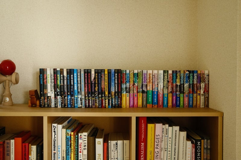 アディト自宅の本棚。最近オフィスに「宇宙兄弟」を全巻持ってきてくれた