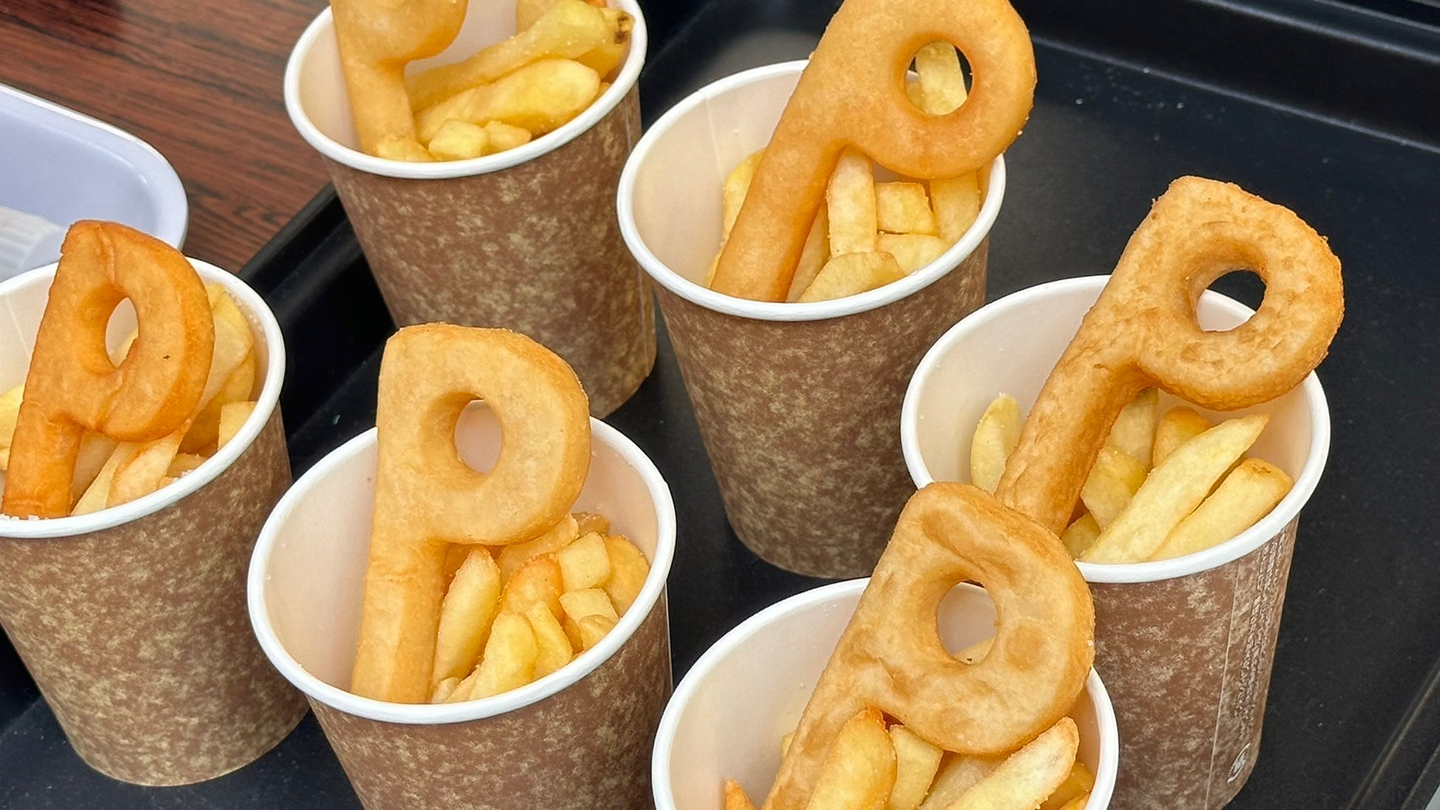 お祭りで出店をする!というのは初めての経験だったので、数か月前から業務の合間をぬって集まり、当日成功させるために意見を出し合って試行錯誤を重ねました。会社のことを少しでも知ってもらえるようにプロシードのPの型をしたオリジナルポテト【Pポテト】を作りました。このPを作るのが本当に苦戦しました(笑)