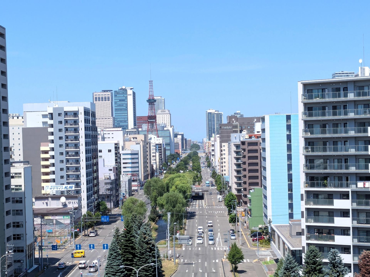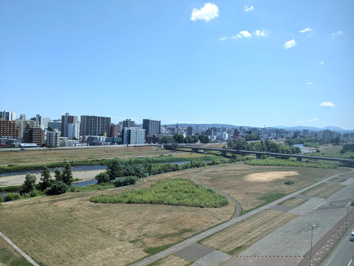 グループ6社、総勢約60名の社員が働く新オフィスは豊平川に面するオフィス街にある第3弘安ビルの8階。こちらは窓から撮影した景色です!