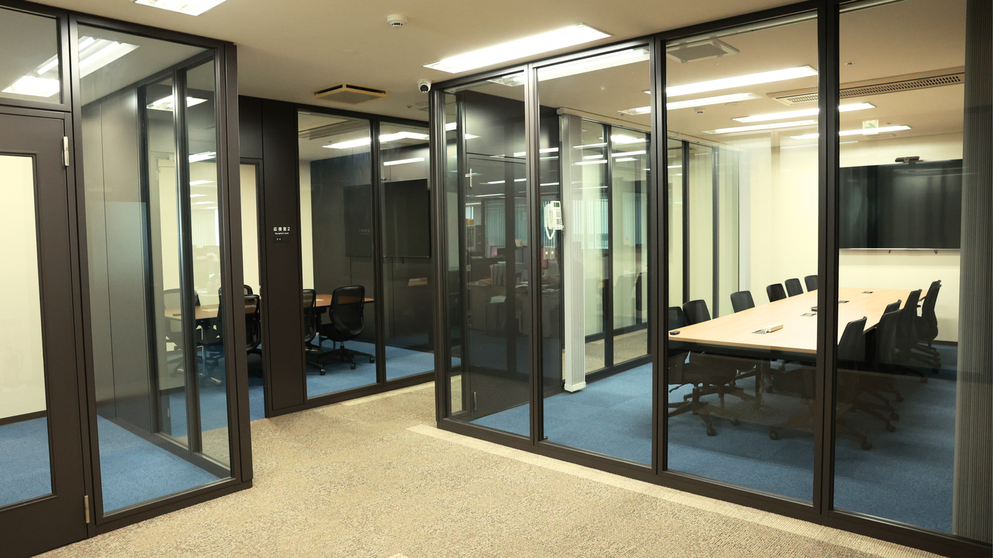 社内での打合せ、お客様やお取引先様の来客、オンラインミーティングなど様々な会議体に対応した応接室(会議室)を計5部屋ご用意しています!
