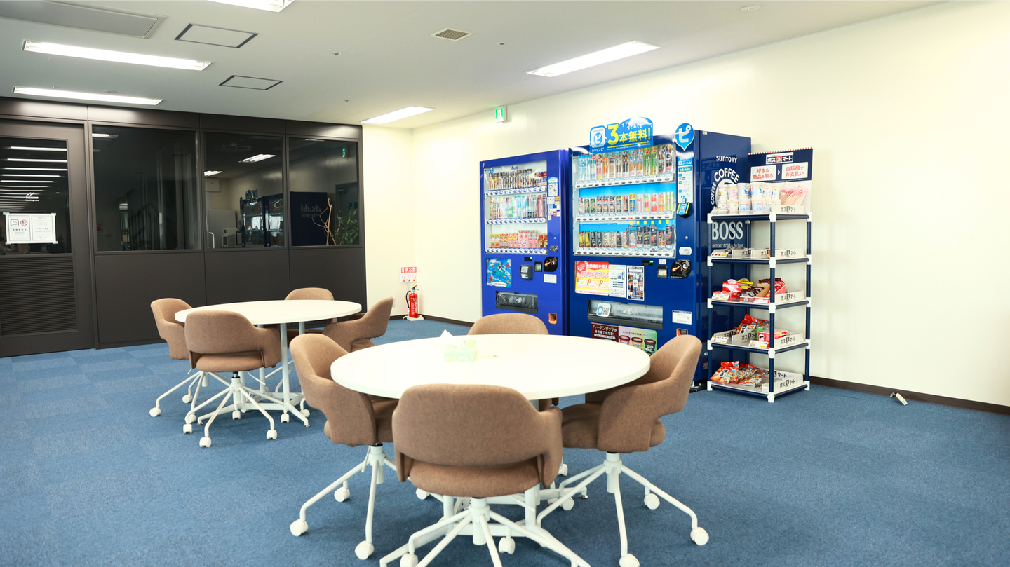 自動販売機で飲み物を購入できる他、お菓子やカップ麺の販売もあるので小腹がすいたときにも利用できるようになっています。