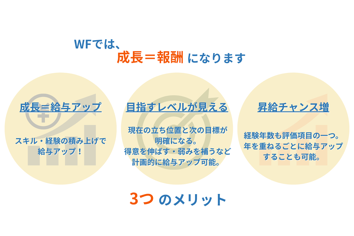 年次や在籍年数に依存するのではなく、実際のパフォーマンスと成長度合いに応じて、着実に処遇が上がっていく制度設計となっているのです。