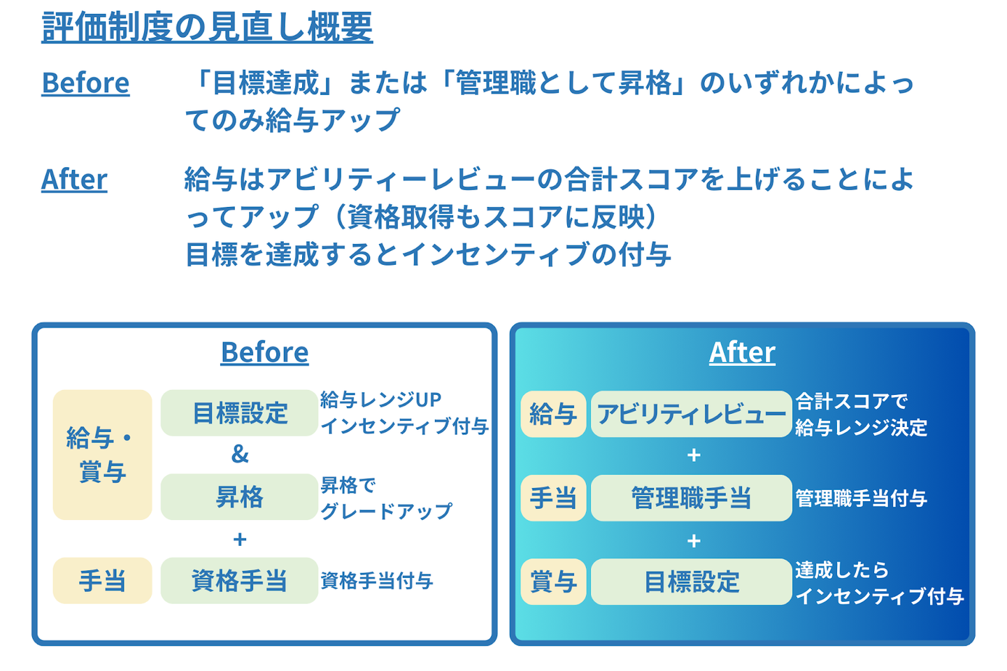 これまでの仕組みでは、目標を達成したり、管理職に上がらないと年収を伸ばしづらい側面がありました。今回の制度は、スキルや経験の積み上げ自体が給与に反映されるため、よりフェアでシンプルな構造になっています。