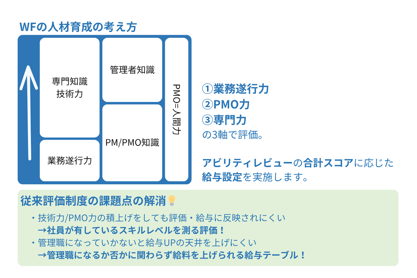 この数年、ワールドフェイマスは「PMOナンバーワン企業になる」というビジョンのもと、組織変革を進めてきました。その延長線上で、評価制度や給与制度もアップデートする必要があったのが今回のきっかけです。
