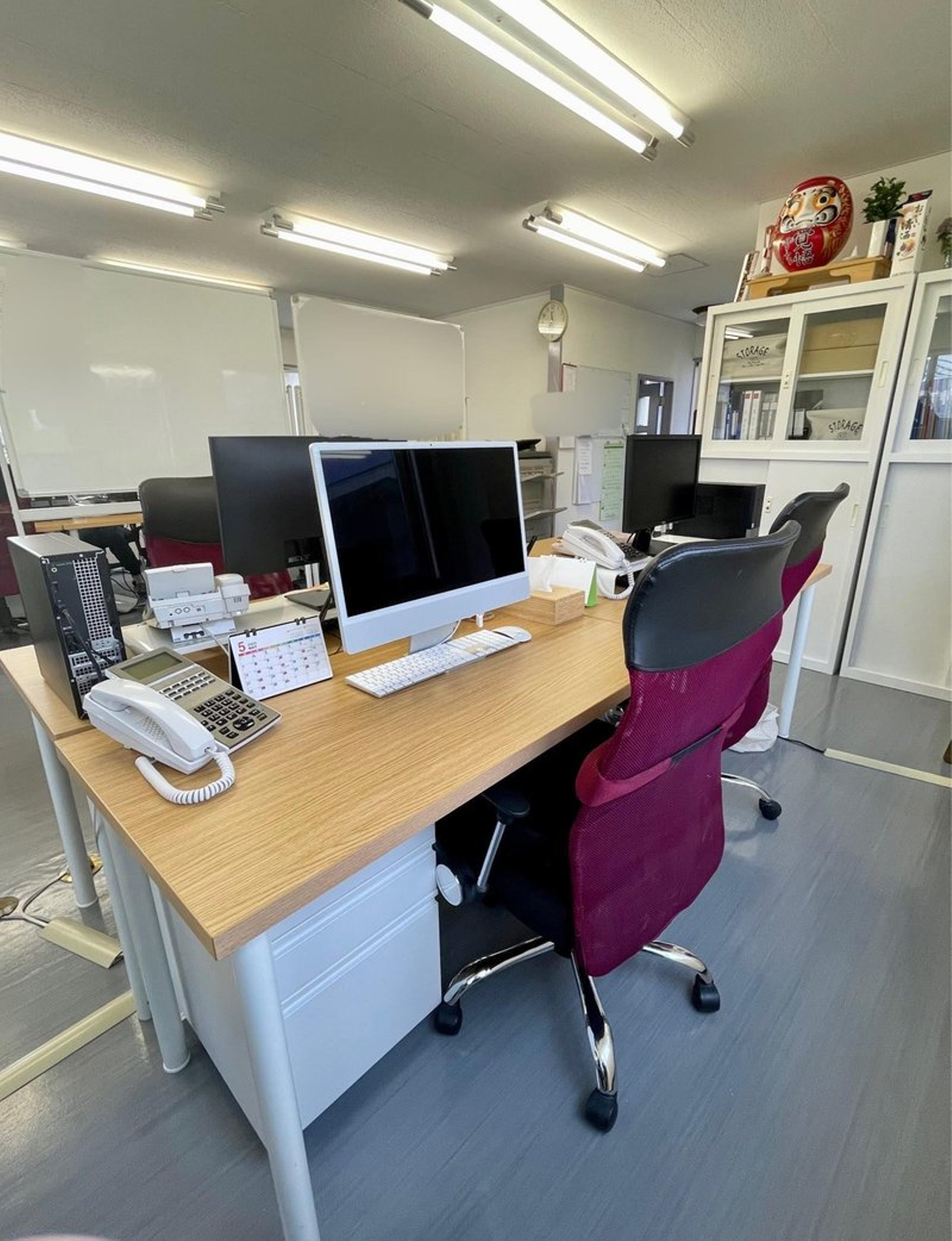 手触りのいいデスクがあります。ここでアイデアを出し合ったり研修を受けたりします。