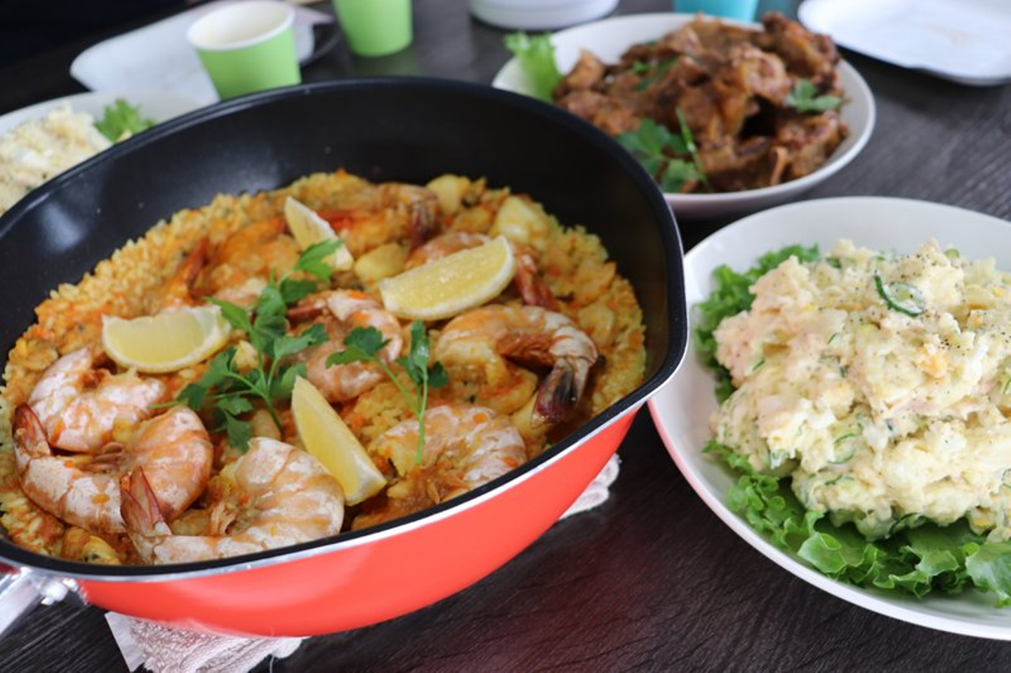 筆者が初出勤の日にキッチンにおいでと言われ、一緒に料理しました。