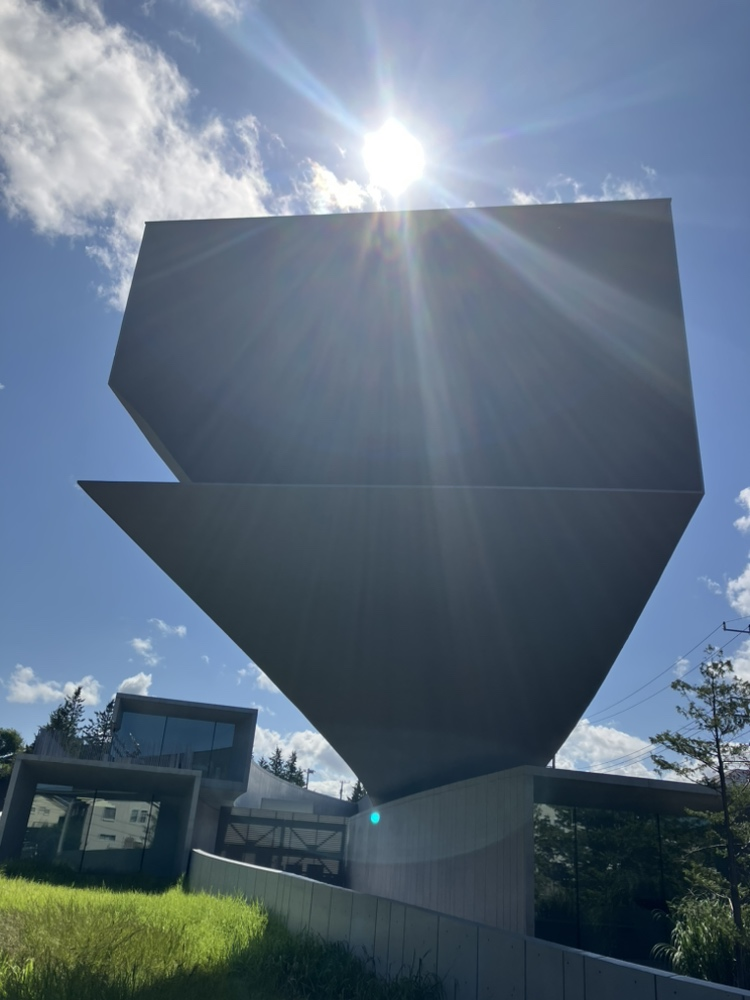 このように同じ美術館なのに見る方向が違うだけで別の建造物のようにみえるのもホキ美術館の特徴ですね。