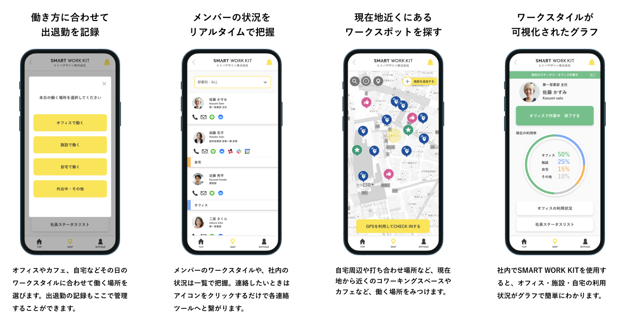 SMART WORK KITは、働く場所の記録・共有が可能なハイブリッドワーク支援ツールです。