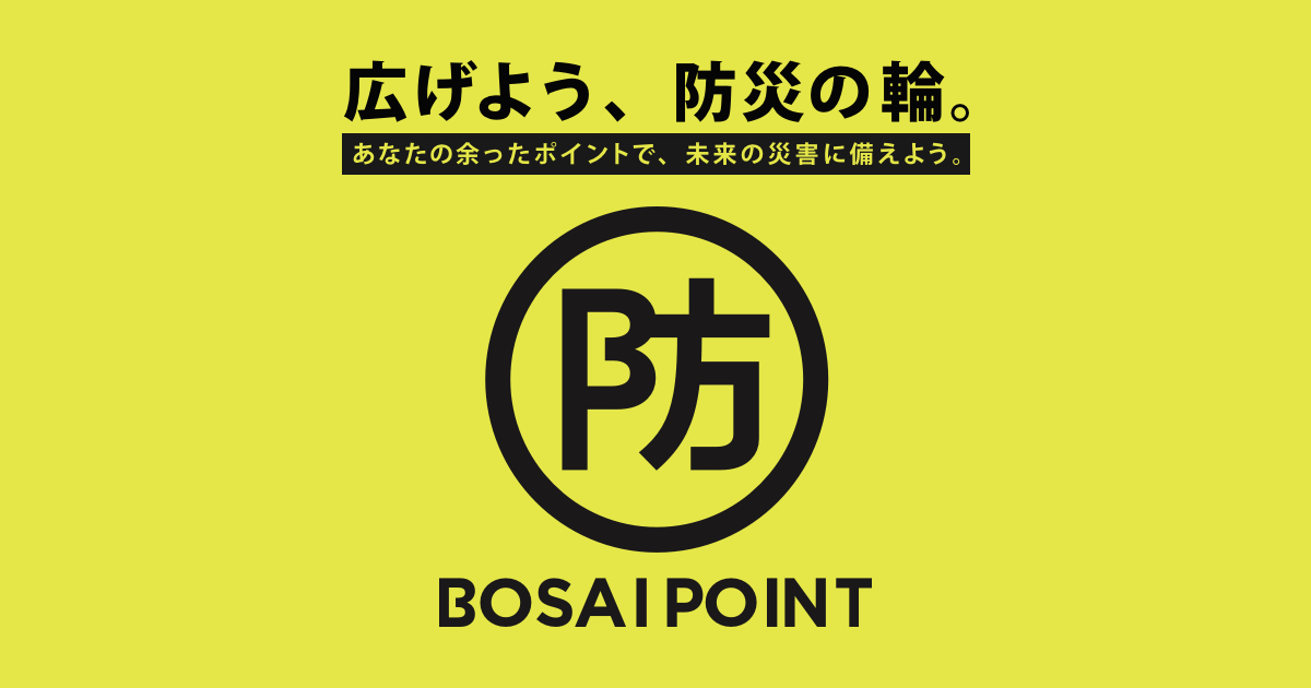 BOSAI POINTは、お客様が持つ様々なカードの余ったポイントをドネーションしていただき、そのポイントを換金して災害支援物資に変えストック。災害時に速やかにその物資を災害地に届ける、未来に備えるポイントドネーションサービスです。