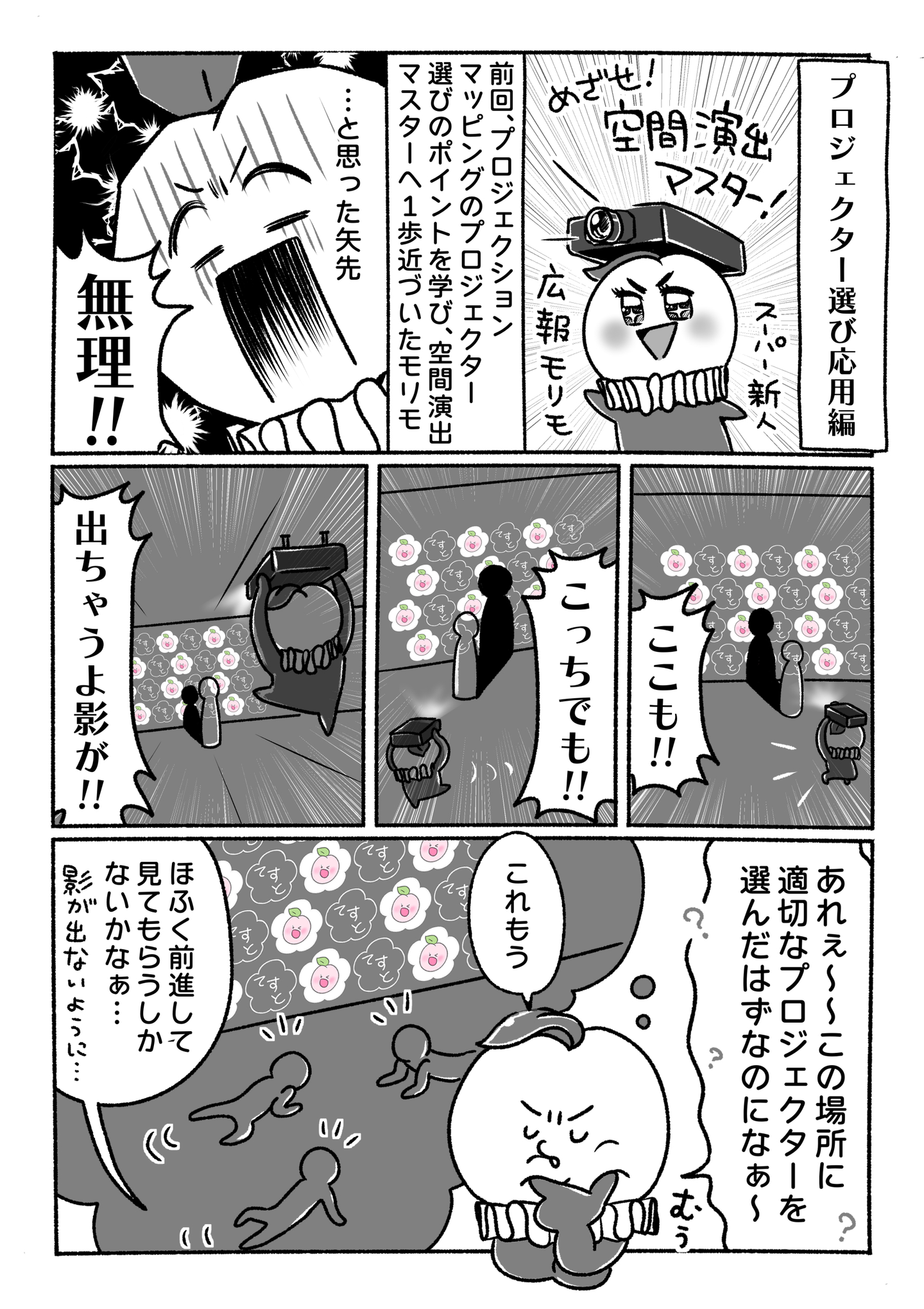 こんにちは!株式会社アシュラスコープインスタレーションに興味を持って頂きありがとうございます!こちらのページでご紹介する漫画は、プロジェクションマッピング演出などでとても重要な事前準備である「投影シミュレーション」についてご紹介しています!