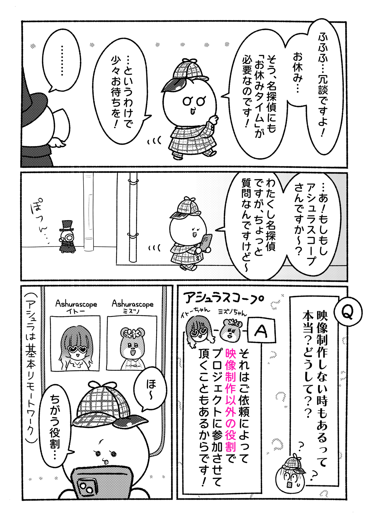 こんにちは!株式会社アシュラスコープインスタレーションに興味を持って頂きありがとうございます!突然ですが我が社は「どんな仕事をしている会社なのか分からない…」といった事を思われてしまいがちなのです、、!!そんな謎多きアシュラスコープの謎を解明するため、名探偵が立ち上がる、、!!