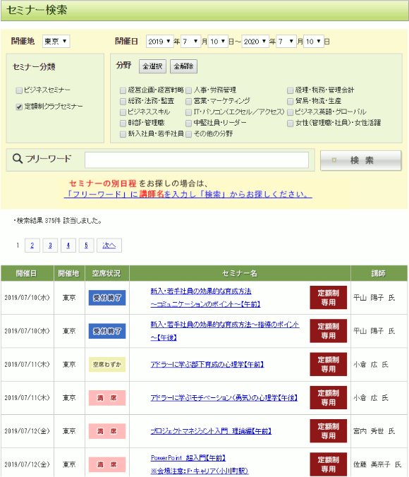 上記は最近のセミナーの一例ですが、様々な分野の研修があるため、自分の興味のある分野が探しやすくなっています。タイムスケジュールも午前、午後とわかれているため、業務の都合をつけて、受講しやすい研修です。
