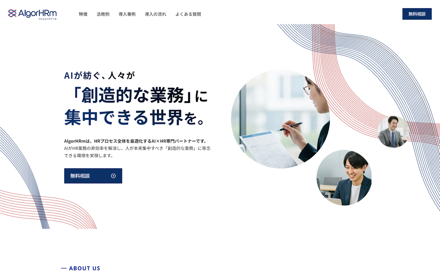 AlgorHRmは「AIを感じさせるスマートさ」がテーマでした。ただ、あまりにもデジタル寄りになると冷たくなるので、HR=人の領域に関わるものとして、曲線や柔らかい色味を使って、“人の優しさ”を感じさせるトーンにするなど、温かみを残す工夫をしました。