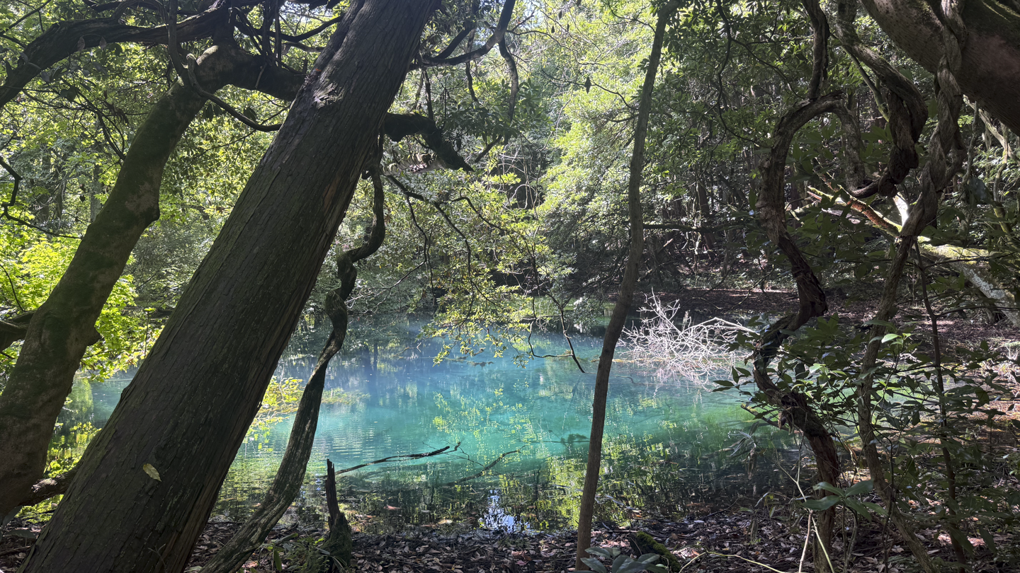 まず訪れたのは、神秘的なエメラルドグリーンが印象的な 「丸池様」。美しい景色に癒されながら写真を撮ったり、自然を満喫しました。