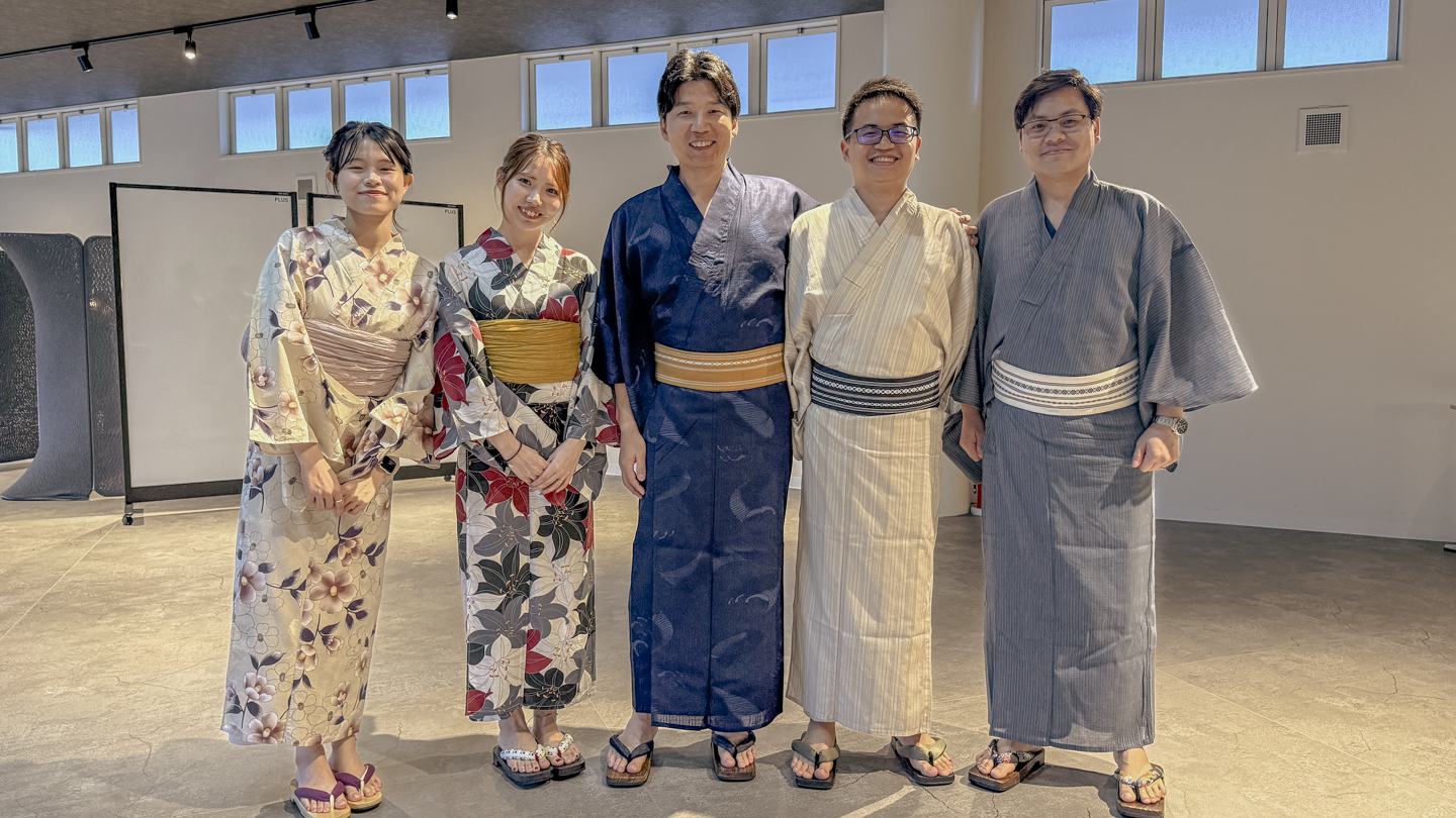 浴衣姿のまま クライアント様のオフィスへ訪問し、現地メンバーとご挨拶。