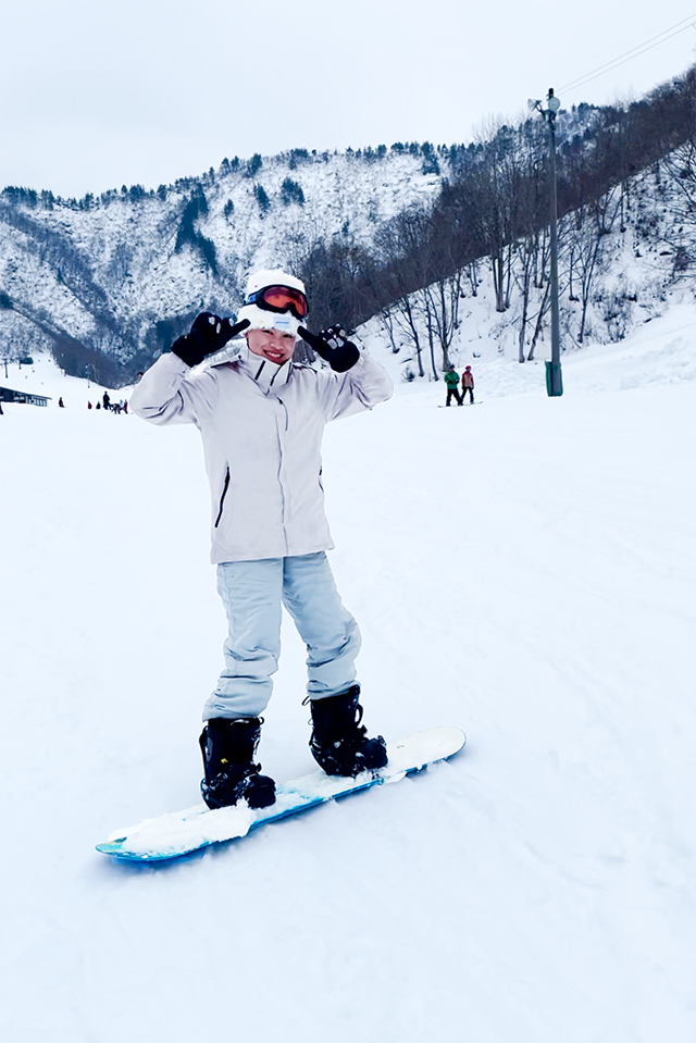 タン:はい、やっぱりリフトから降りる時がまだ慣れず、よく転んでしまいました。次の日は体が痛かったので、次回は膝パッドなど、安全対策をしたいですね。もっと難しい斜面に挑戦したいです。