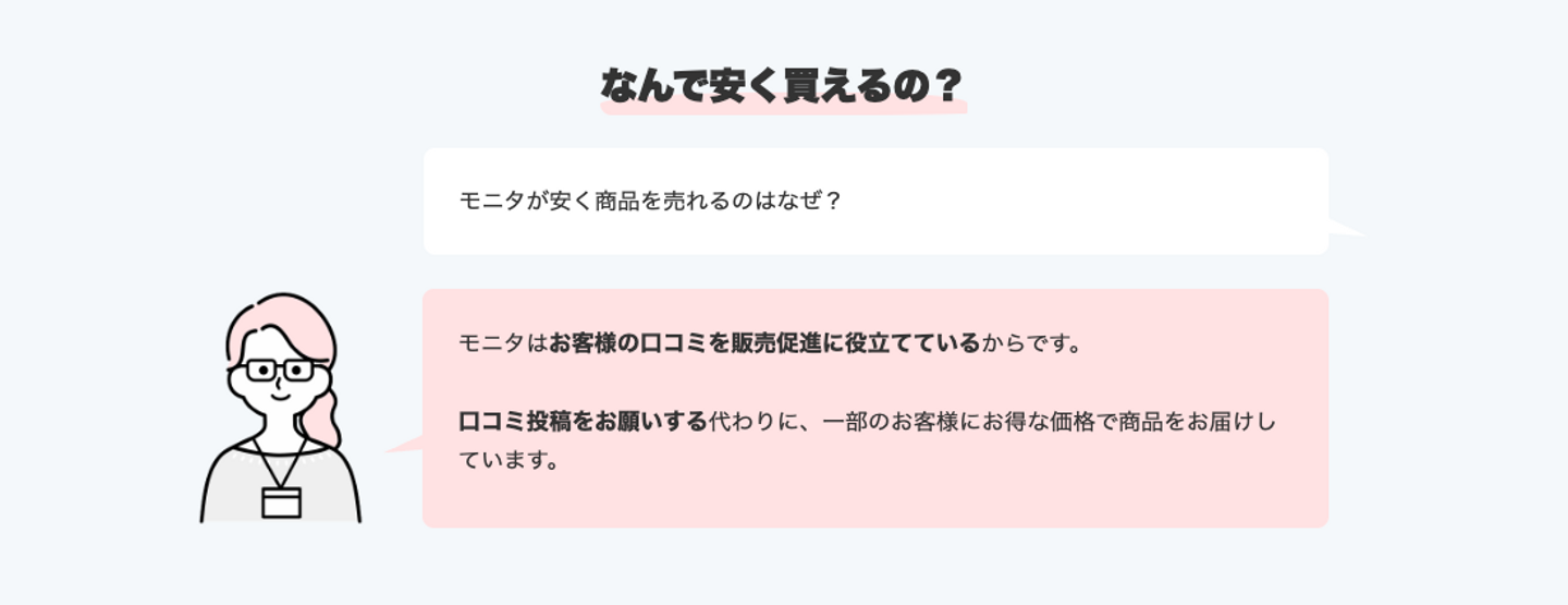 田中: モニタの最大の特徴は「口コミの力」を活用している点です。当選者には1円で商品を提供する代わりに、事前アンケートと事後アンケートへの回答をお願いしています。