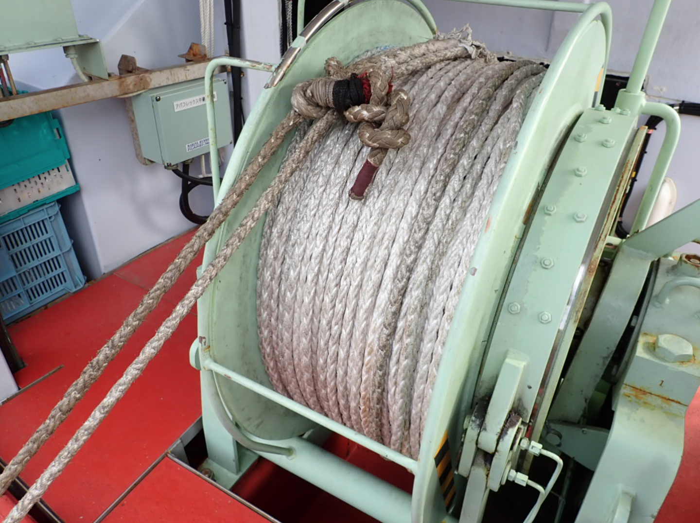 ワイヤが当たり前だったデレッキ索、まき網の大手綱は高強力繊維ロープに変わっています。