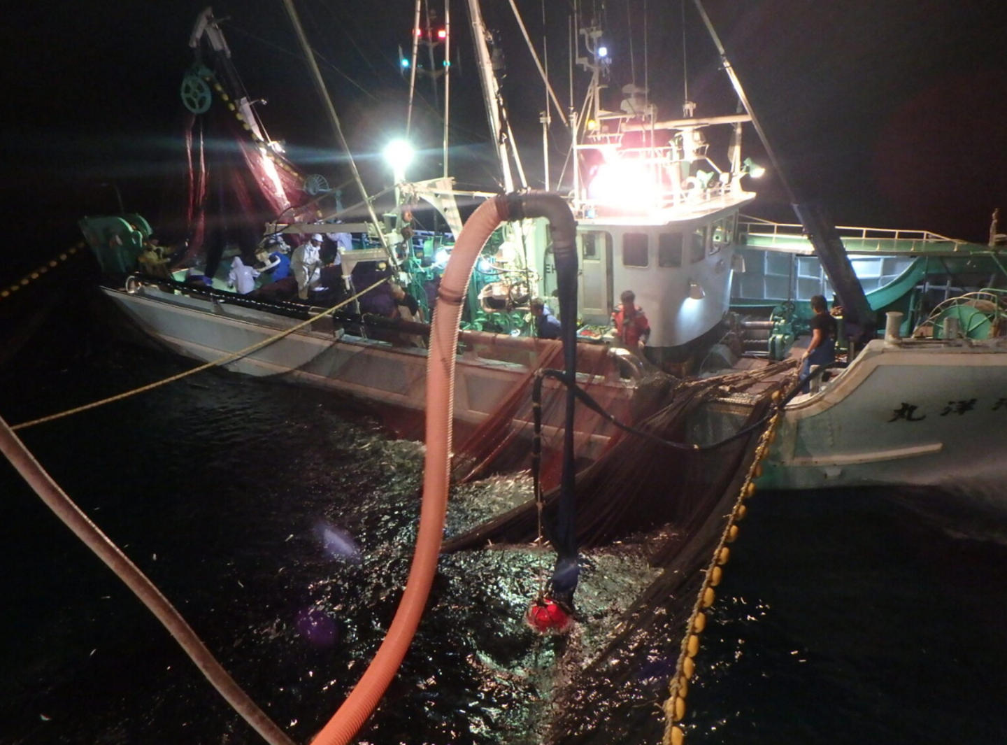 まき網漁業において、従来当たり前に行われていた網での魚の取り上げは、海外を参考に取り入れた押し上げ式フィッシュポンプに変わりつつあります。
